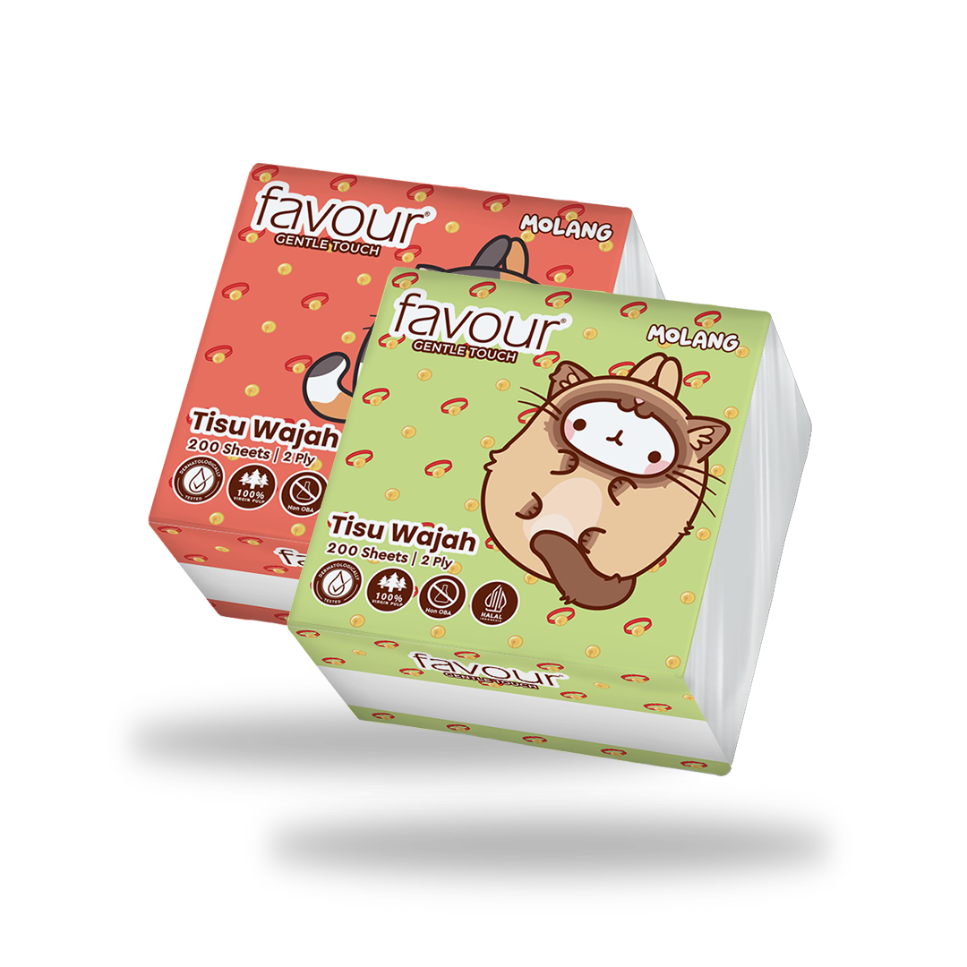 Favour Facial Tissue kini hadir dengan desain karakter Molang yang menggemaskan. Facial Compact Interfold Molang tissue isi 200 sheet ini memiliki 4 variant design packaging dengan ukuran yang compact sehingga lebih mudah dibawa dan diletakkan dimana saja. Cocok untuk semua jenis kulit karena telah teruji secara klinis serta mampu membersihkan area wajah, mulut, dan kulit tubuh dari keringat dan kotoran. Favour tissue cocok untuk semua jenis kulit karena telah teruji secara klinis.